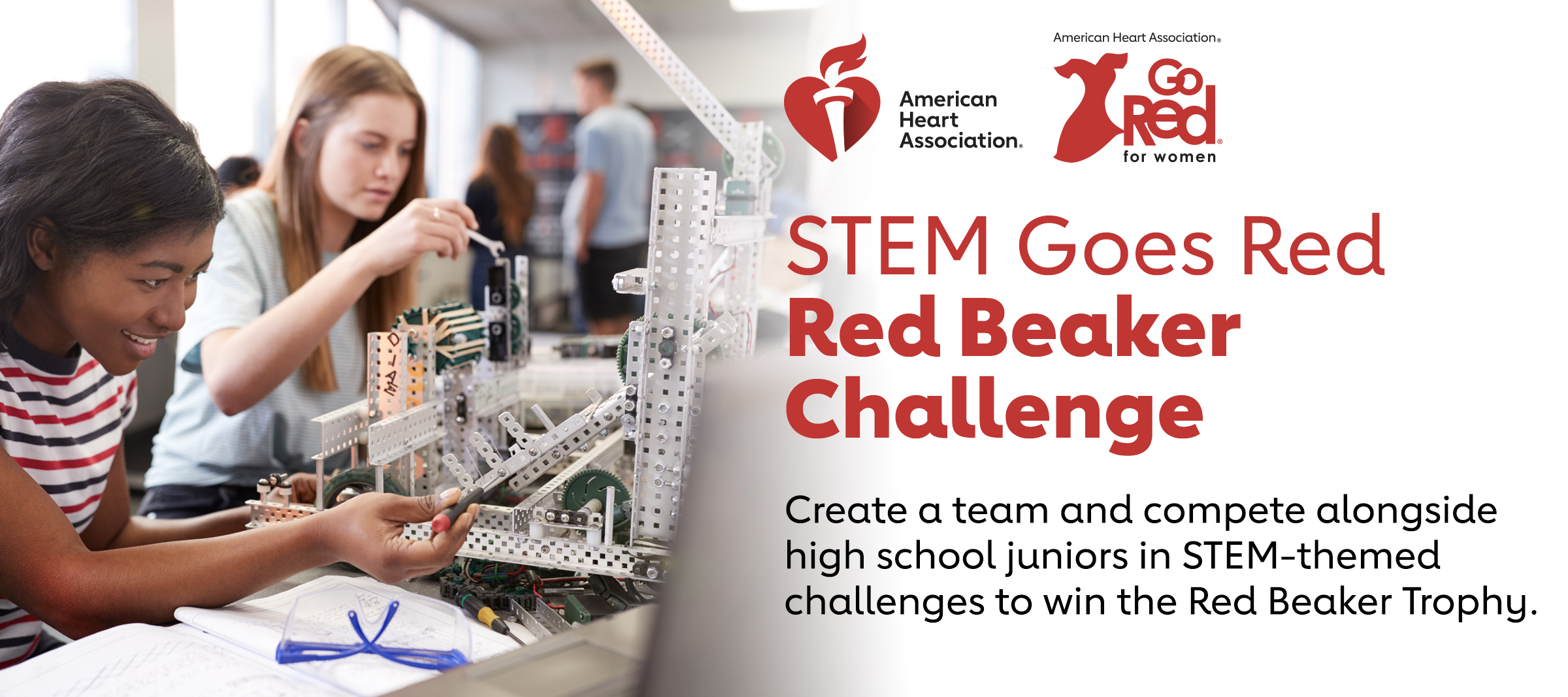 The Red Beaker Challenge invites companies and philanthropists to come together and celebrate STEM Goes Red. Create a team of 8 to compete alongside the 2019 STEM class of high school girls in STEM-themed challenges. The winning team is awarded the Red Beaker Trophy during the luncheon program.